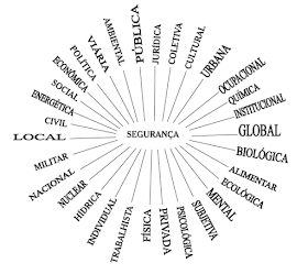 A segurança tem muitas dimensões: da militar à política, da social à econômica, da cultural à psicológica e afetiva. A segurança comunitária, doméstica, na escola, do trabalho, de instalações, a segurança da informação, a segurança pessoal ou a condominial são outros aspectos. Há uma dimensão cósmica da segurança humana, já que a Terra está sujeita a colisões de corpos celestes, com potencial para provocar catástrofes.
